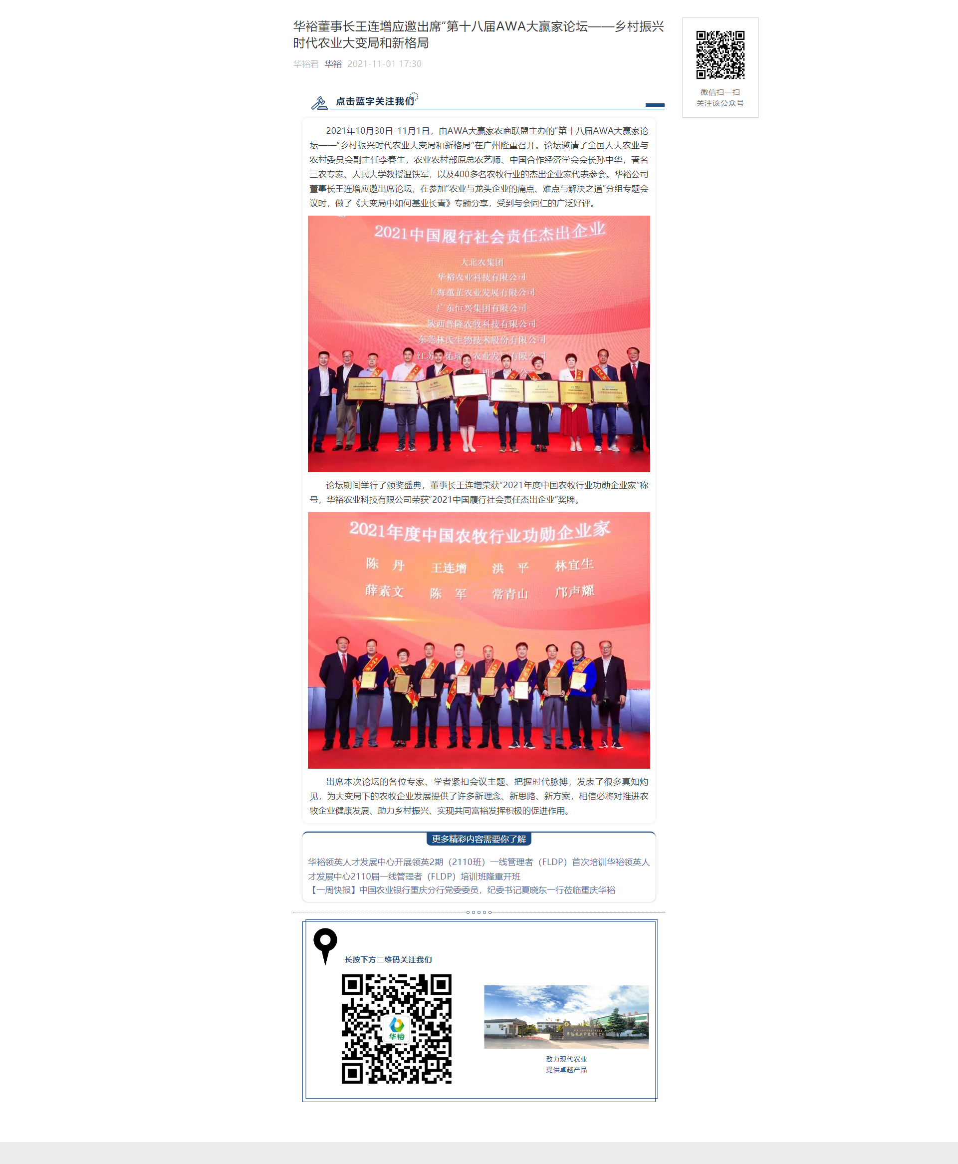 華裕董事長王連增應(yīng)邀出席“第十八屆AWA大贏家論壇——鄉(xiāng)村振興時(shí)代農(nóng)業(yè)大變局和新格局