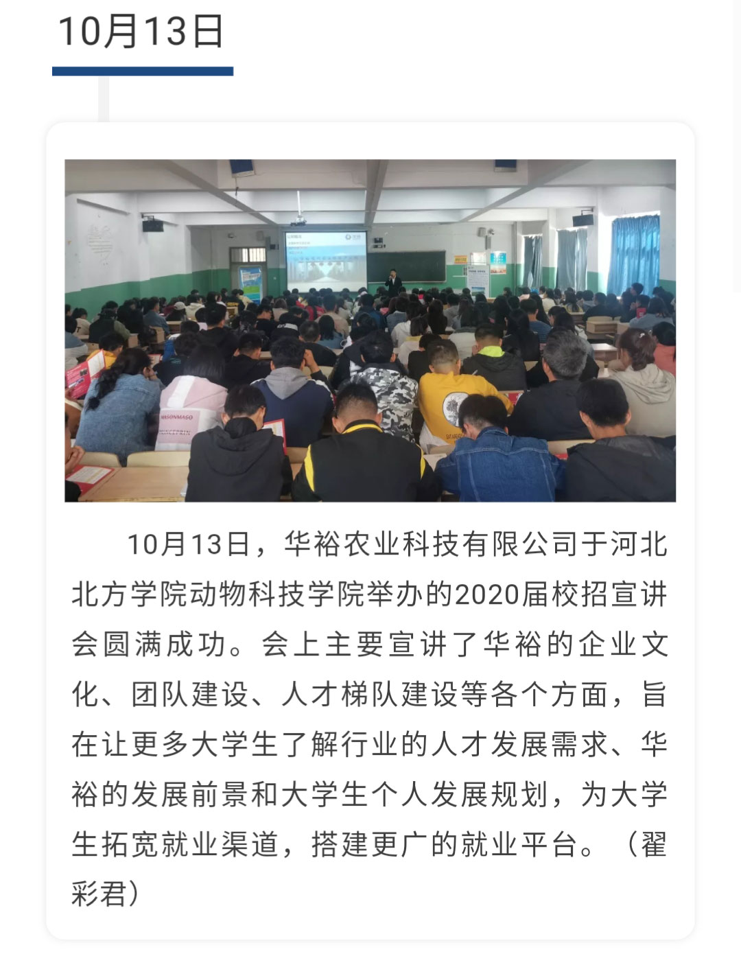 上一篇:校企合作助力蛋雞產(chǎn)業(yè)發(fā)展——華裕與河北工程大學(xué)舉行校企合作洽談...