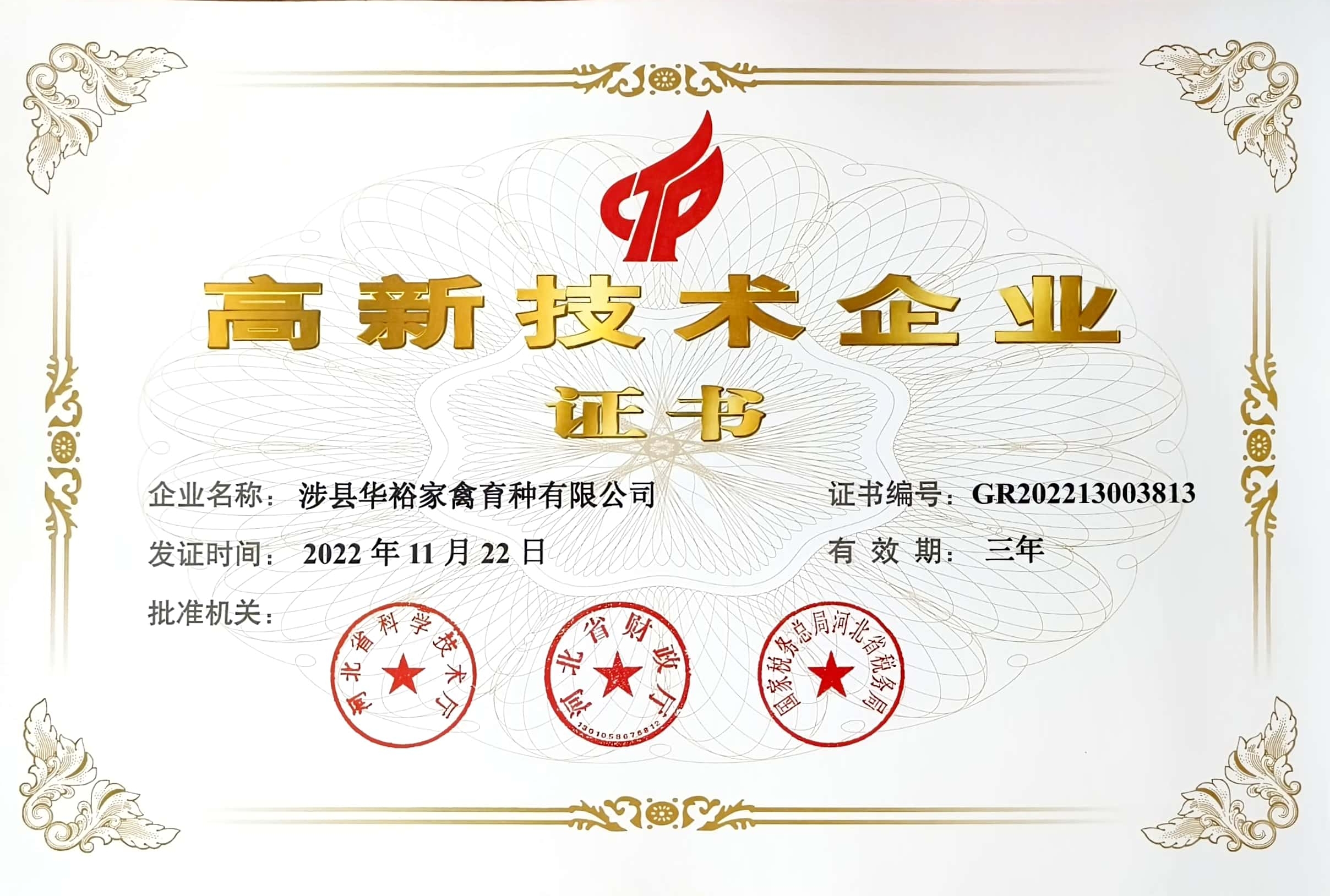 喜報|涉縣華裕家禽育種有限公司榮獲“高新技術企業(yè)” 稱號